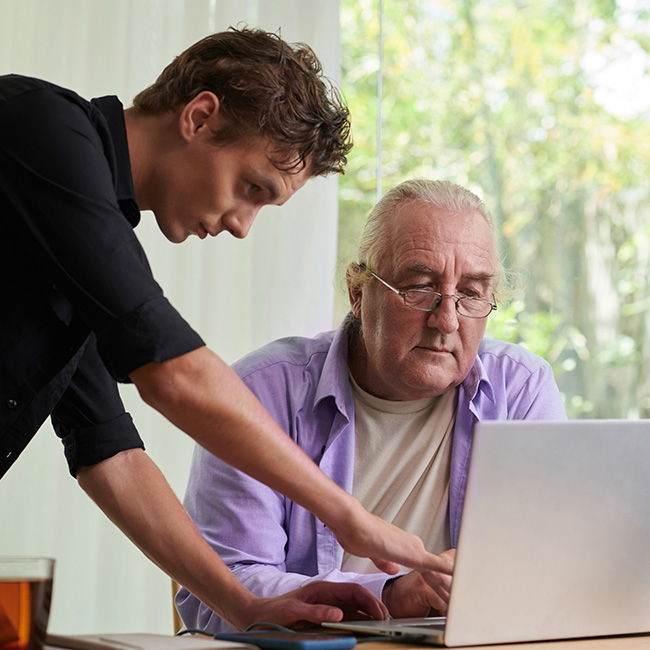 Zertifizierte Studierende aus unseren Partner-Hochschulen begleiten Senior:innen in persönlichen 1:1-Lernstunden – zu Hause oder online. Eine Patenschaft umfasst 4 Stunden Einzel-Mentoring pro Monat – verständlich, geduldig und im eigenen Tempo.